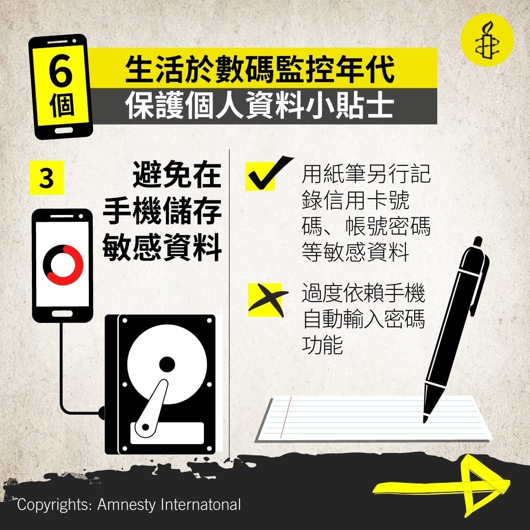 順帶一提,早前見到國際特赦組織香港分會的「6個保障個人資料小貼士」,其中竟然教人「用紙筆另行記錄信用卡號碼、帳號密碼等敏感資料」,差點吐血(有留言,一直未有回應)。