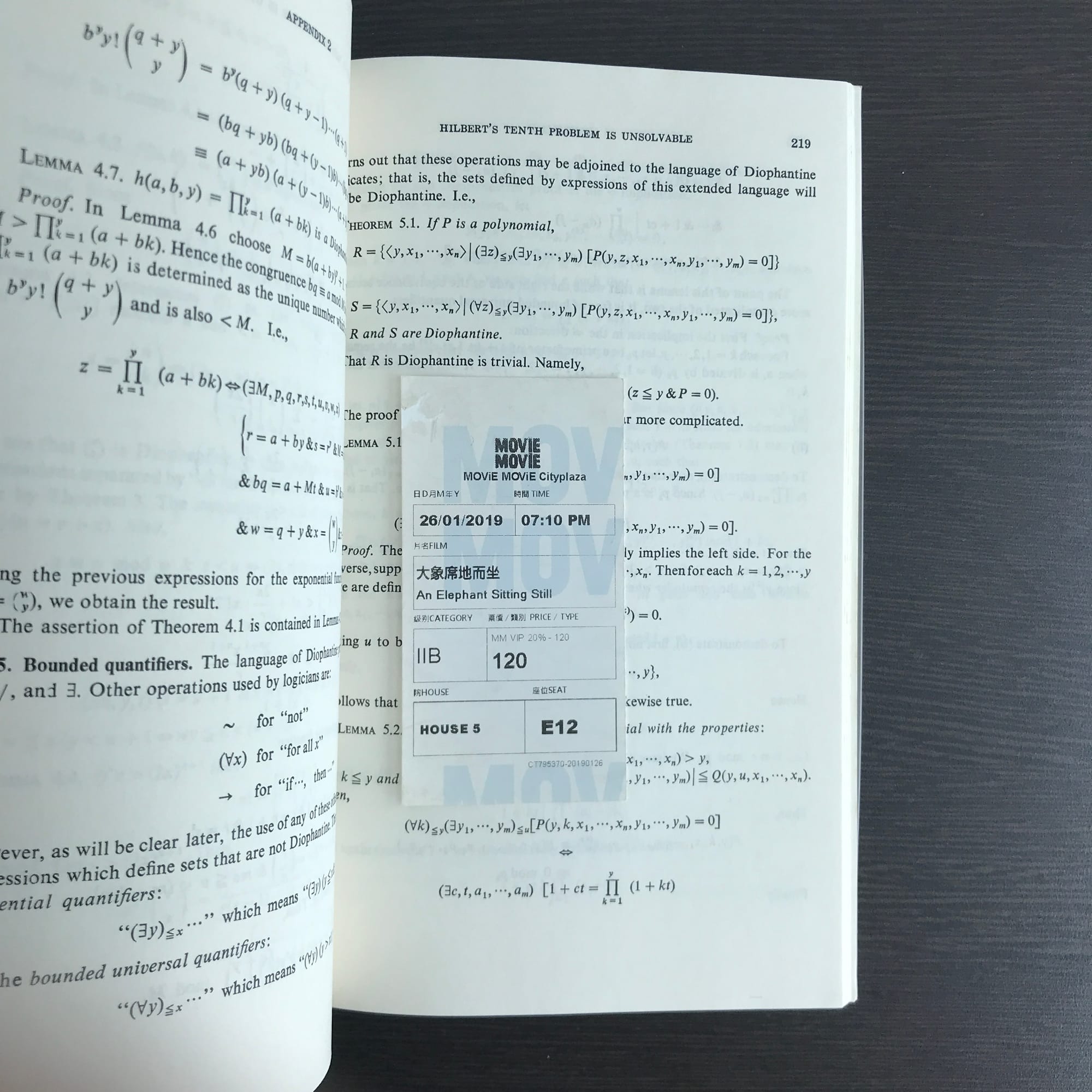 今次揭返先發現當時攝咗張《大象席地而坐》嘅戲飛,所以係2019年1月26日後睇,斷估都係上半年睇,下半年無呢個精神時間(嗰陣好似只係斷斷續續咁睇咗 Susan Haack 本 Philosophy of Logics)。