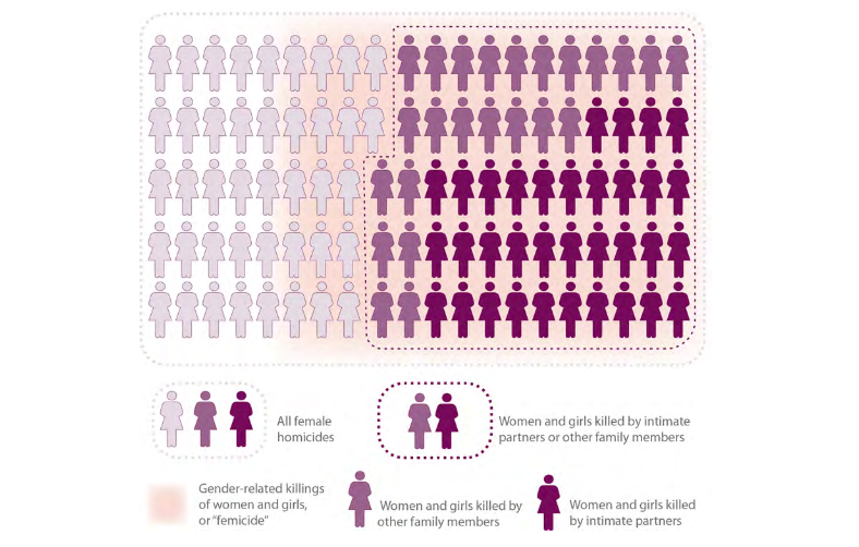 聯合國在 2018 年發表了報告,研究了 2017 年全球的兇殺案,結果發現,雖然女性僅佔全球兇殺案受害人約 20%(即 80% 受害人都是男性,而值得一提,全球兇殺案中犯罪者 90% 為男性),但被害女性有超過一半以上,都是被她們現任或前任親密伴侶所殺害。