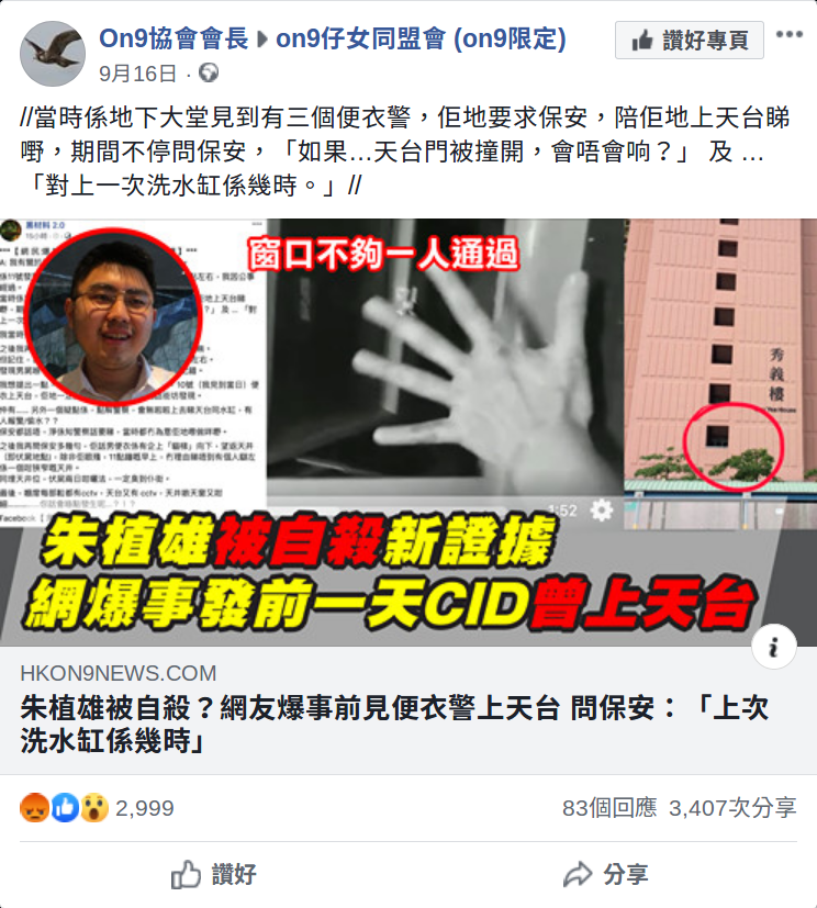 入面提到有幾個 FB page 經常貼內容農場出嚟,其中「香港on9協會」都幾值得注意,事關佢哋個 page 都幾大下(17萬like),仲有份 run「on9仔女同盟會 (on9限定)」呢個差唔多23萬會員嘅 FB group。