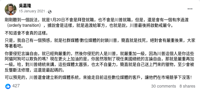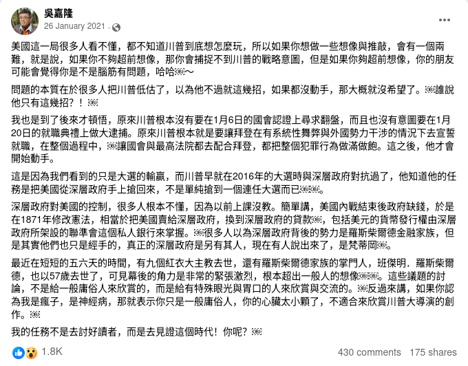 吳嘉隆FB帖文截圖