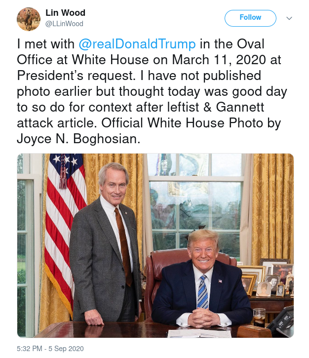 當然,這是假消息,《Snopes》和《路透社》(Reuters)的事實查核均充分說明了這一點。最重要的證據在於那張林伍德跟特朗普的合照其實是他自己於2020年9月5日發佈到Twitter、明確表示在2020年3月11日拍攝的照片︰