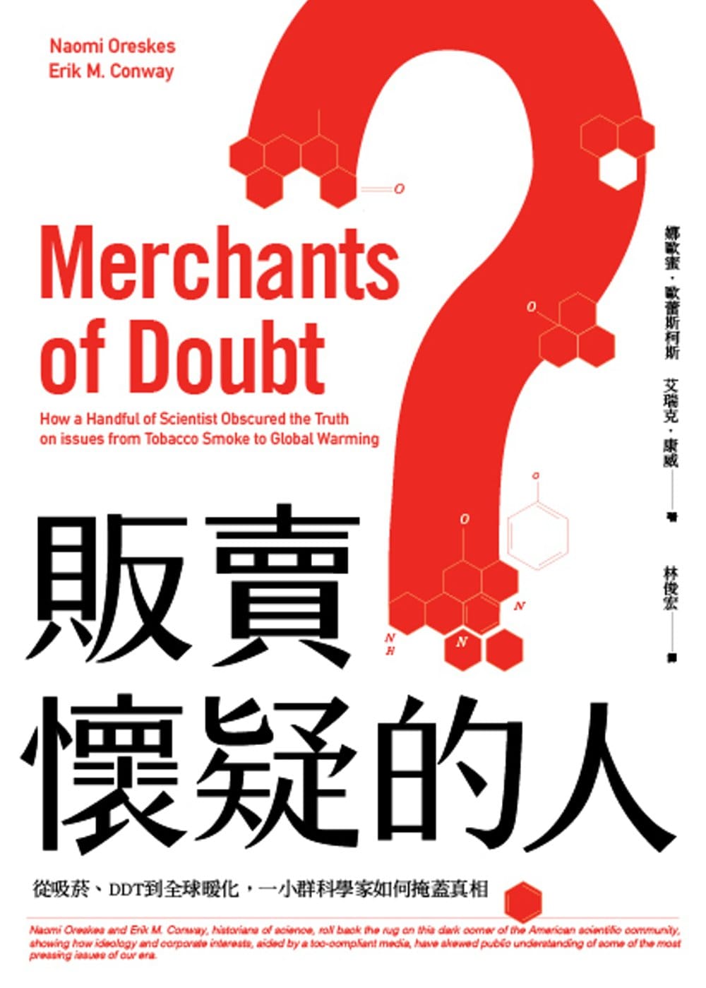 《販賣懷疑的人:從吸菸、DDT到全球暖化,一小群科學家如何掩蓋真相》,Naomi Oreskes、Erik M. Conway著, 林俊宏譯。