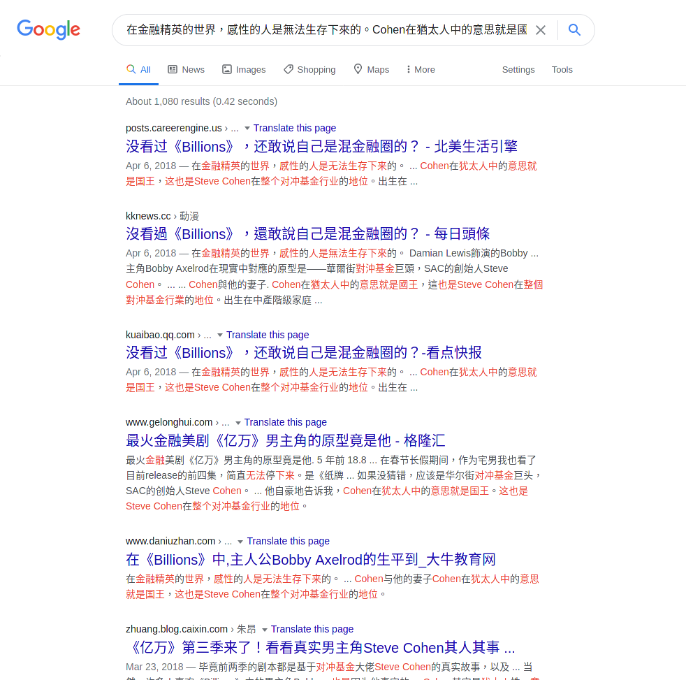 看到Google的結果就令人好奇到底是「中文翻譯」抑或「簡繁轉換」,不過我沒訂閱去求證︰