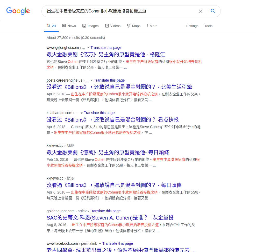 一把文中字句放到Google,就能夠發現「老占」「天下文章一大抄」的來源︰
