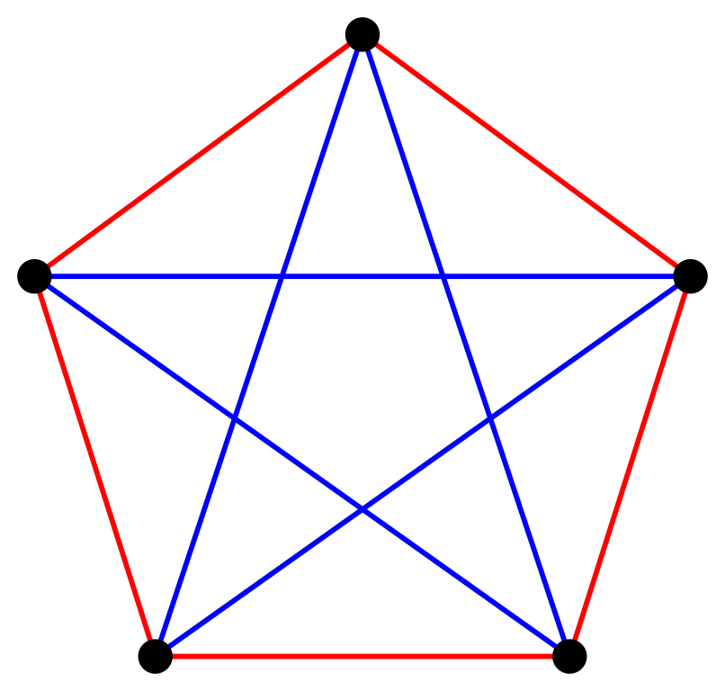 藍斯理論通常以顏色去提出問題,例如︰若把一個(由頂點和邊組成的)圖形的邊隨意填上藍色和紅色,這個圖形要有多複雜才可以確保有一個淨色(純紅色或純藍色)的三角形?(這個問題就跟上一段的問題有關。)