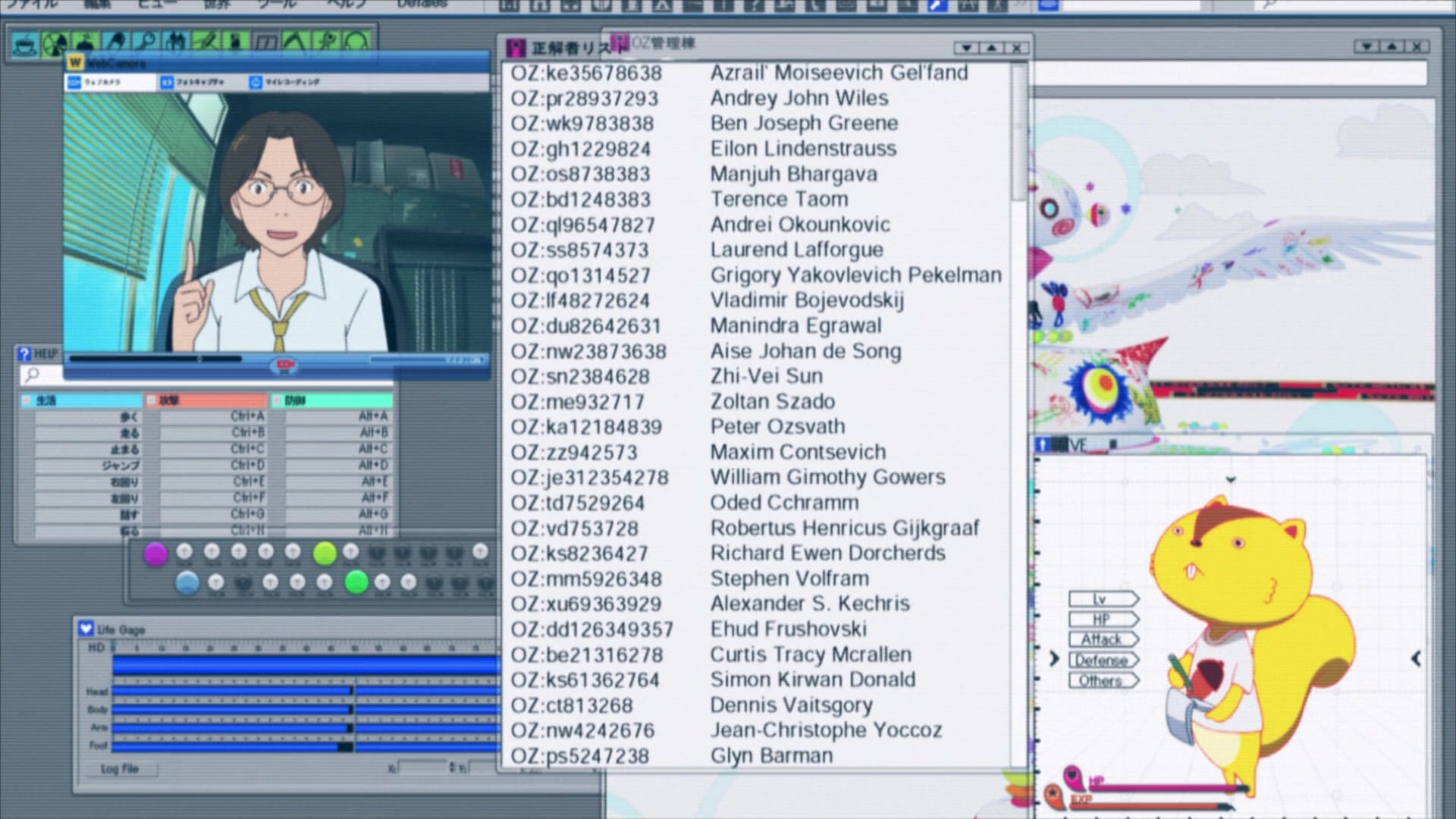 早前重看《夏日大作戰》(主要是想找截圖),發現下面這一幕(電影中破解了系統密碼的名單)包含一些熟悉的名字,當中不少是名字略為改寫的數學家︰