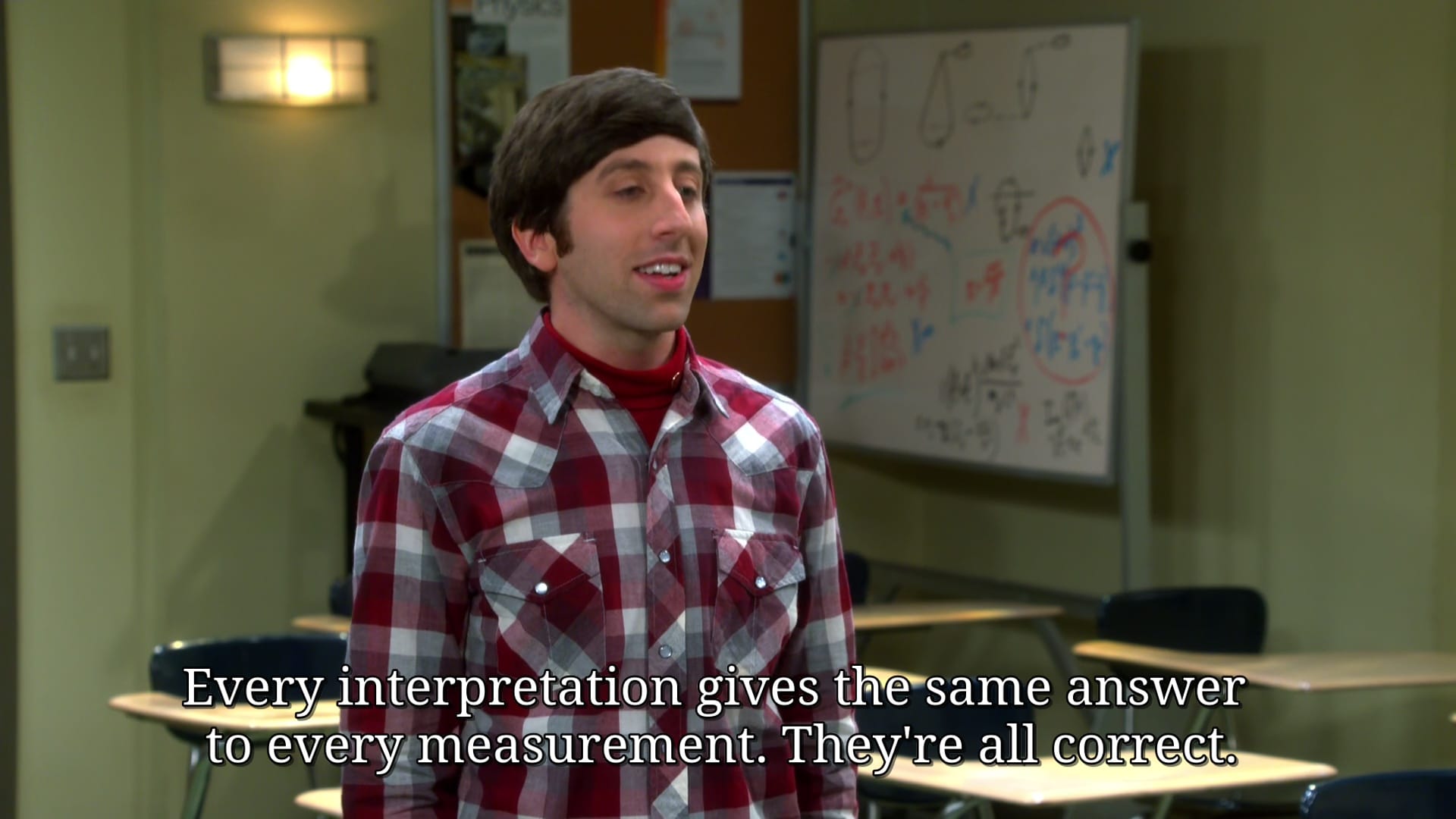 - Many-worlds Interpretations(MWI)只係對量子力學詮釋之一,各種詮釋唔影響量子力學嘅應用。正如 The Big Bang Theory 入面 Howard 答 Sheldon 嗰幕咁,我覺得好多時科普會講MWI係讀者鍾意聽。