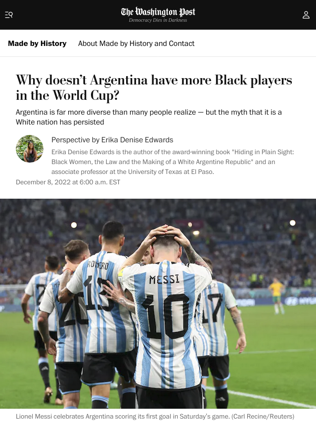 Why doesn’t Argentina have more Black players in the World Cup? (Washington Post)